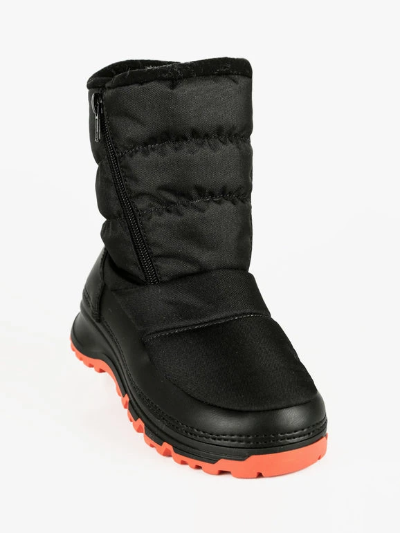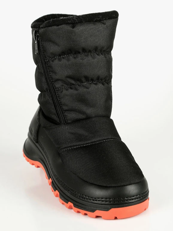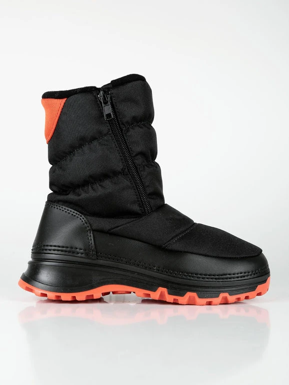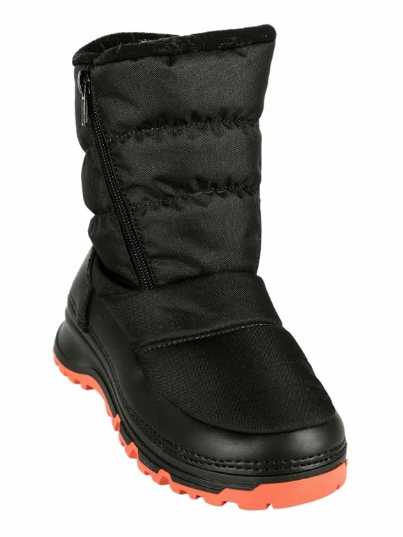 Stivali doposci da bambino con tomaia in tessuto impermeabile, e parte rinforzate sul puntale e sul retro, cerniere laterali, interno con imbottitura calda con pelo e pile, suola in gomma antiscivolo