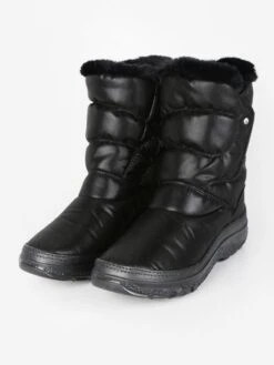 Tomaia in tessuto sintetico, imbottitura calda con pelo, chiusura con cerniera sul lato, suola in gomma antiscivolo