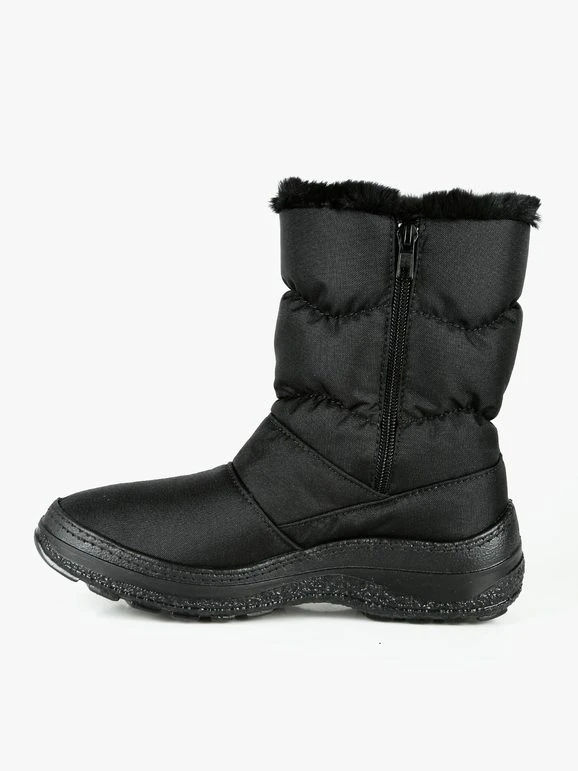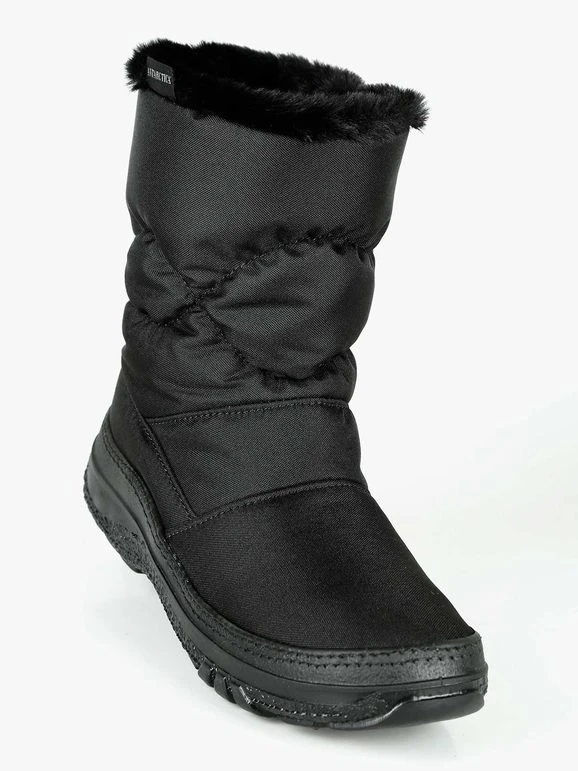 Stivali doposci da donna con tomaia in tessuto impermeabile, cerniera laterale, interno con imbottitura calda di pelo, suola in gomma antiscivolo