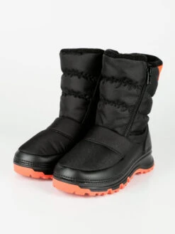 Tomaia in tessuto sintetico, imbottitura calda, chiusura con cerniera su entrambi i lati, suola in gomma antiscivolo