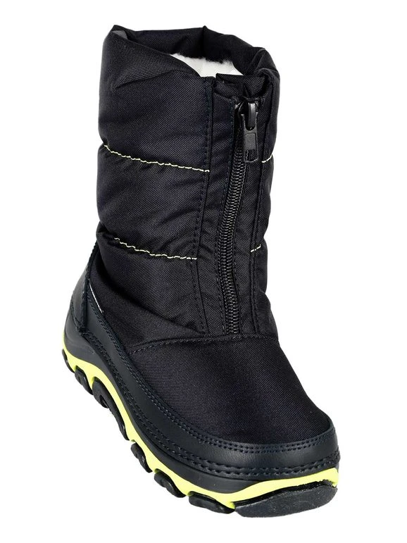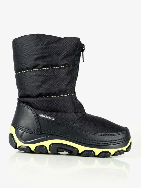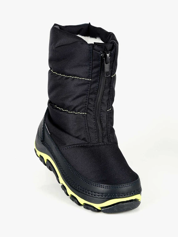 Stivali doposci da bambino con tomaia in tessuto sintetico, e parte rinforzate sul puntale e sul retro, cerniera sul davanti, interno con imbottitura calda con pelo, suola in gomma antiscivolo