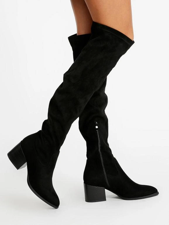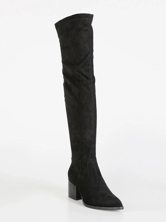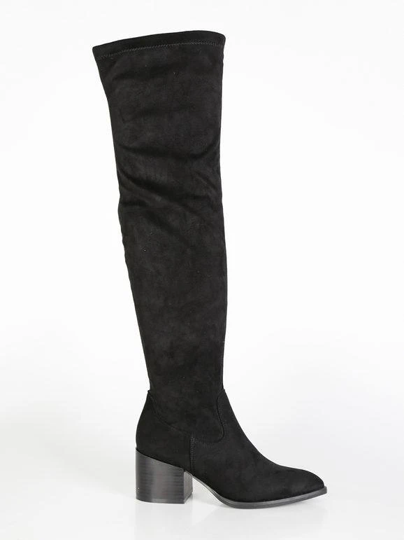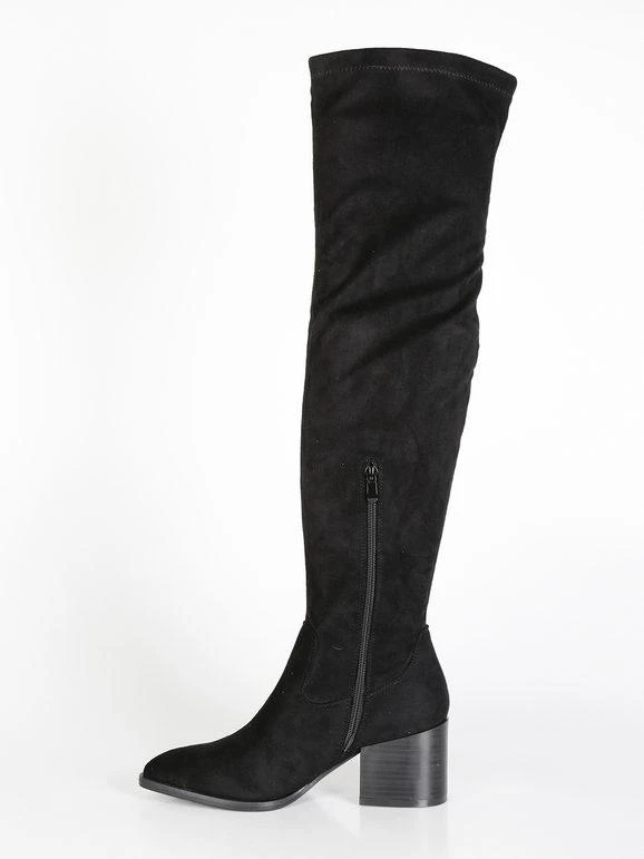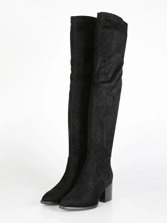 Stivali ad altezza ginocchio, in tessuto effetto scamosciato rinforzata sulla parte fontale, cerniera fino a metà gamba per agevolare la calzata. Modello classico, il tacco della giusta altezza li rende ideali per ogni occasione, per il giorno provali con jeggins aderenti, cappotto lungo e una borsa a mano coordinata. Sconsigliati in caso di pioggia a meno che non si utilizzi un prodotto per impermeabilizzare il tessuto scamosciato.