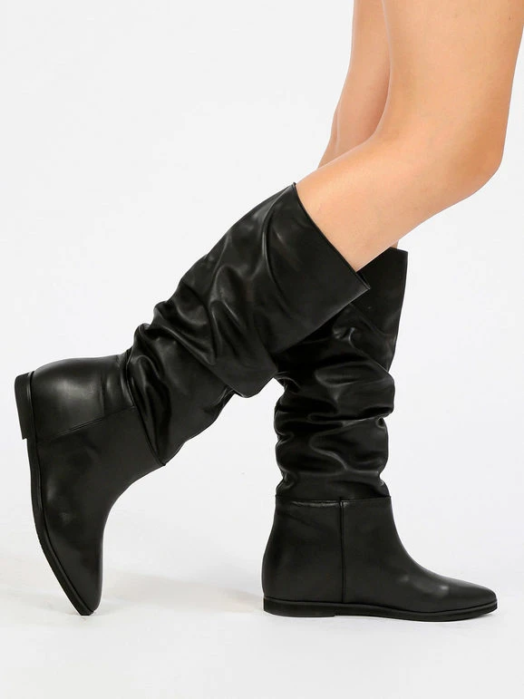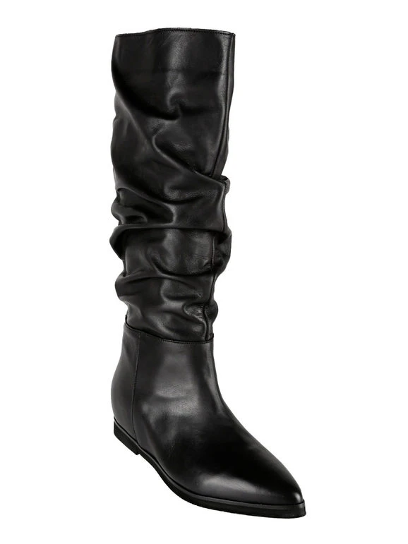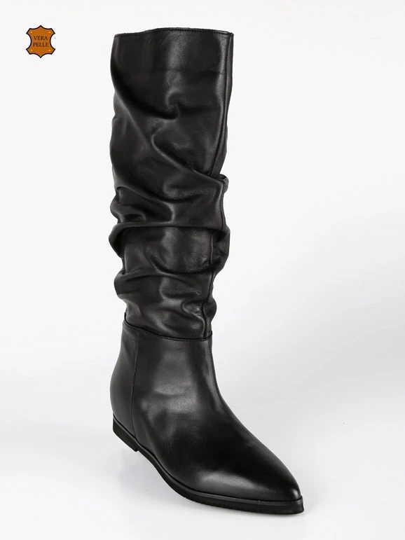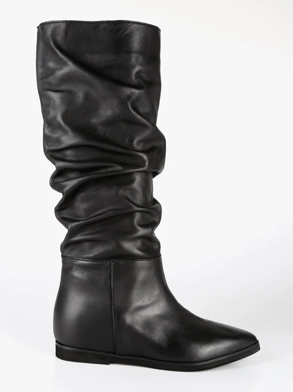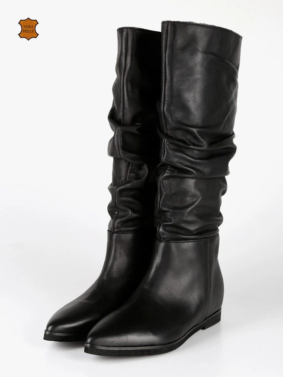 Stivali donna con tomaia in pelle arricciata, plantare in pelle, suola in gomma antiscivolo