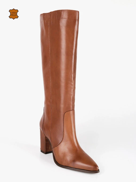 Stivali donna con tomaia in pelle, plantare in pelle, suola in gomma.