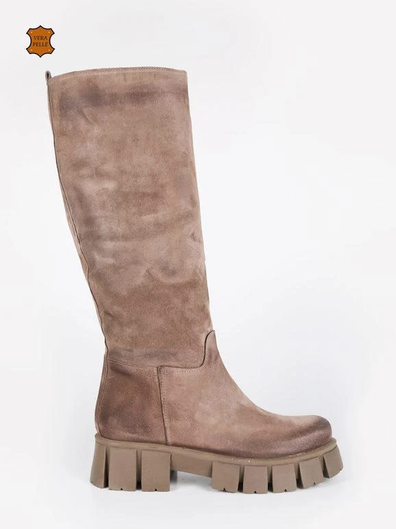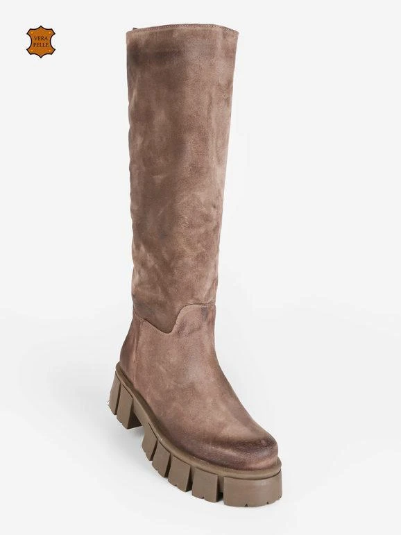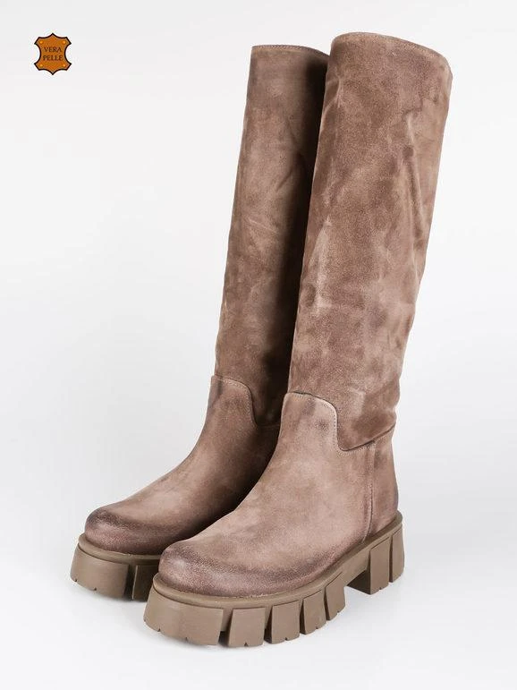Calzata stivali donna in pelle scamosciata con suola carrarmato: