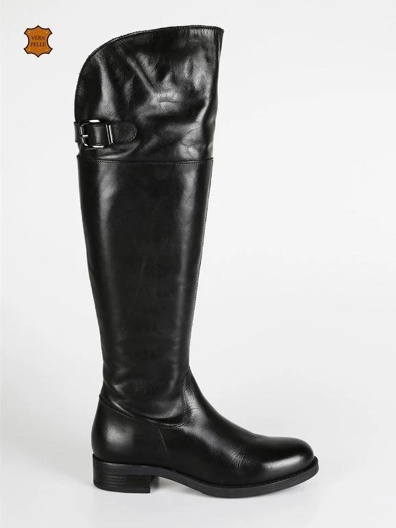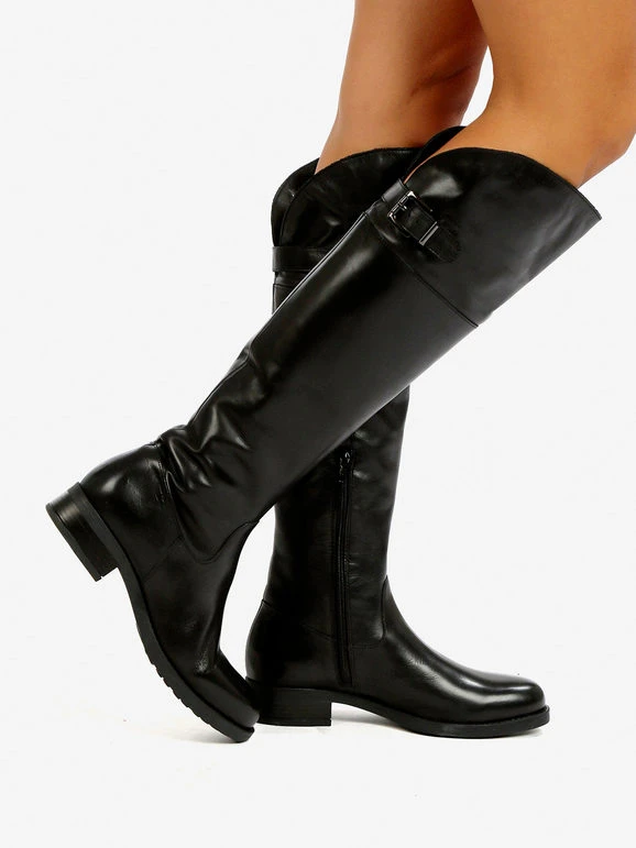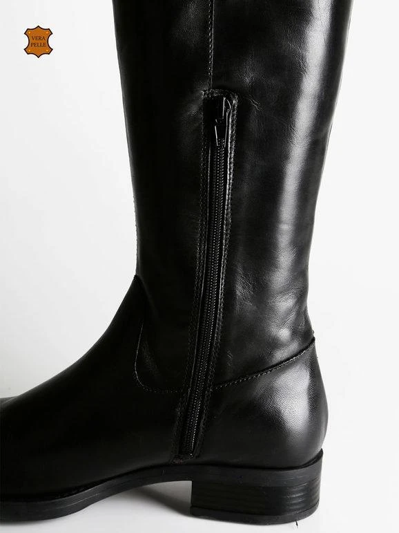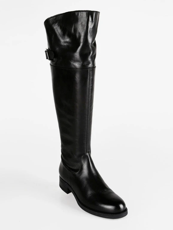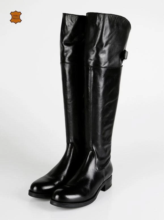 Tomaia in pelle liscia, cerniera di chiusura sul lato interno, soletta interna in pelle, suola in gomma antiscivolo, tacco largo alto 3 cm, altezza gambale 48,5 cm.Molto versatili, grazie alla alla possibilità di cambiare l’altezza del gambale risvoltando la parte superiore. Ideali in tutta la lunghezza con vestitino e collant per essere comoda e femminile allo stesso tempo, risvoltati puoi abbinarli con jeans aderenti o jeggins sia denim che neri, ed un maglione caldo per le giornate autunnali. Perfetti sia con cappotti eleganti che con giacche corte. Nel N.38 la soletta interna è di 23.5 cm circa