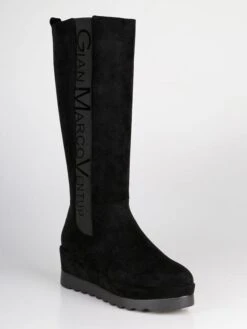 Stivali donna modello texano, tomaia in pelle con ricami, cuciture a vista, interno in tessuto, suola in gomma antiscivolo.