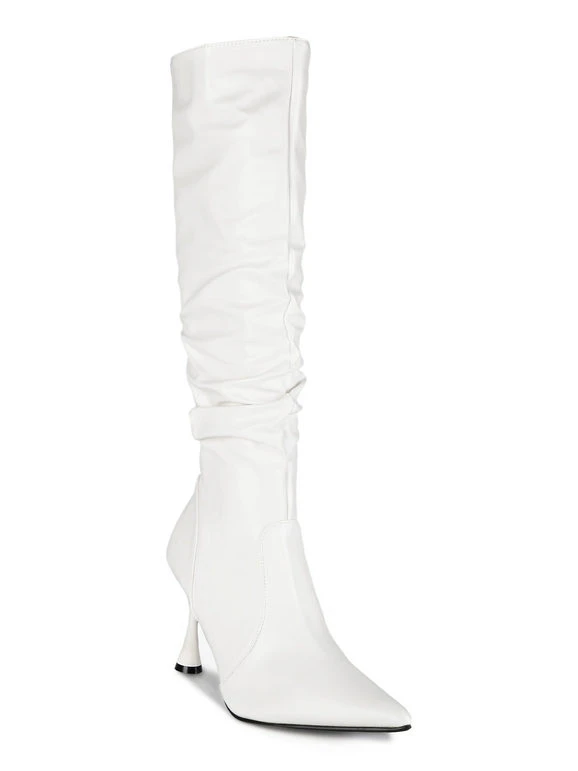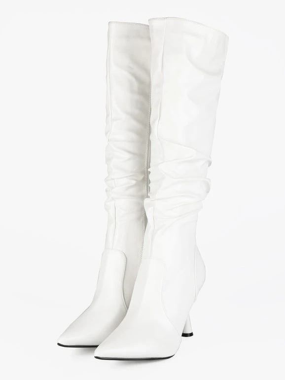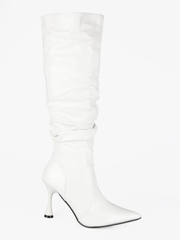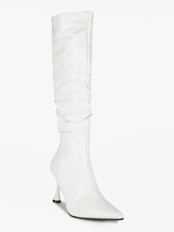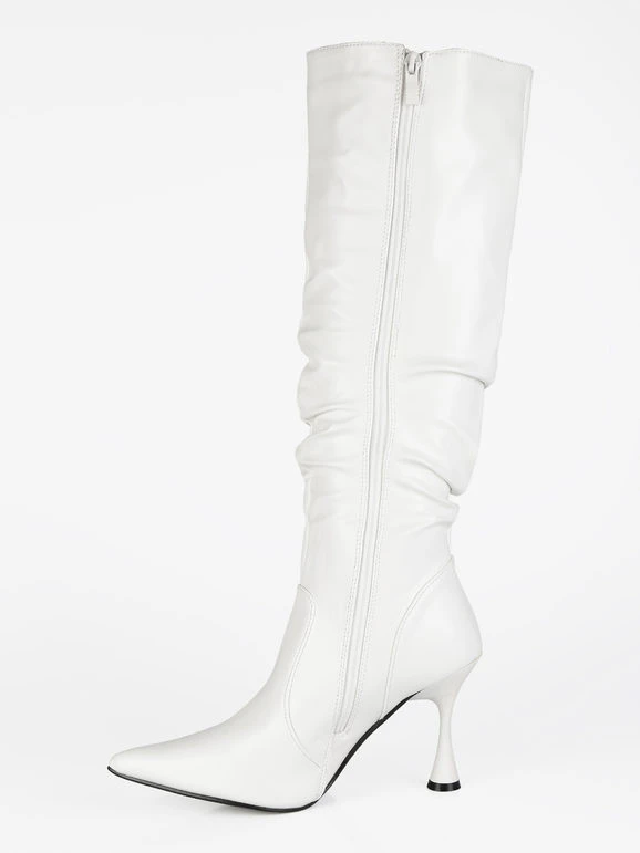 Stivali donna a punta con tomaia in ecopelle, interno in tessuto foderato, chiusura con zip sul lato interno, suola in gomma con tacco a rocchetto alto 9cm.