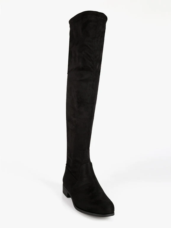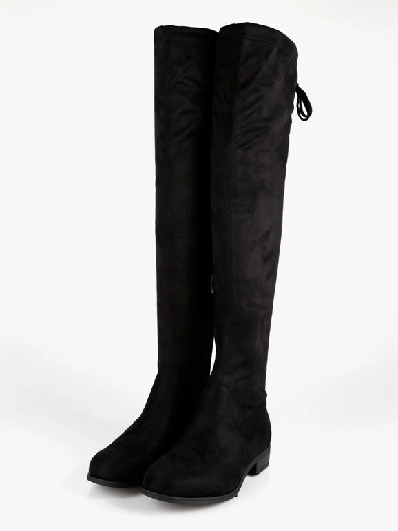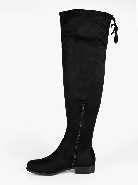 Stivali donna in tessuto scamosciato, gambale regolabile con laccetti sul retro, mezza zip sul lato interno, suola in gomma