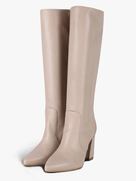 Stivali donna con tomaia e interno in pelle,puntale a punta, suola in gomma.