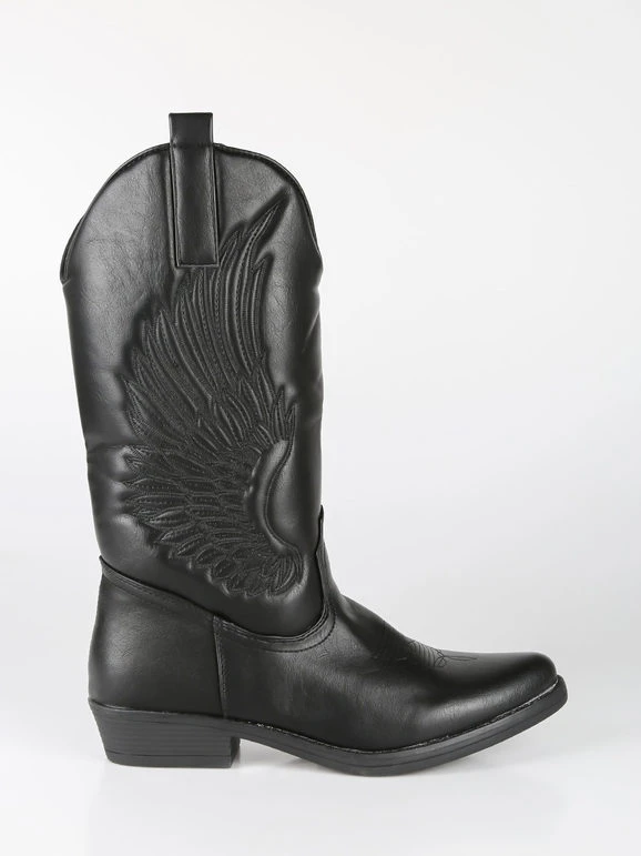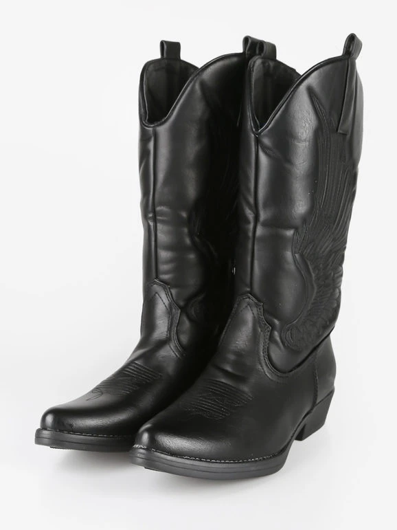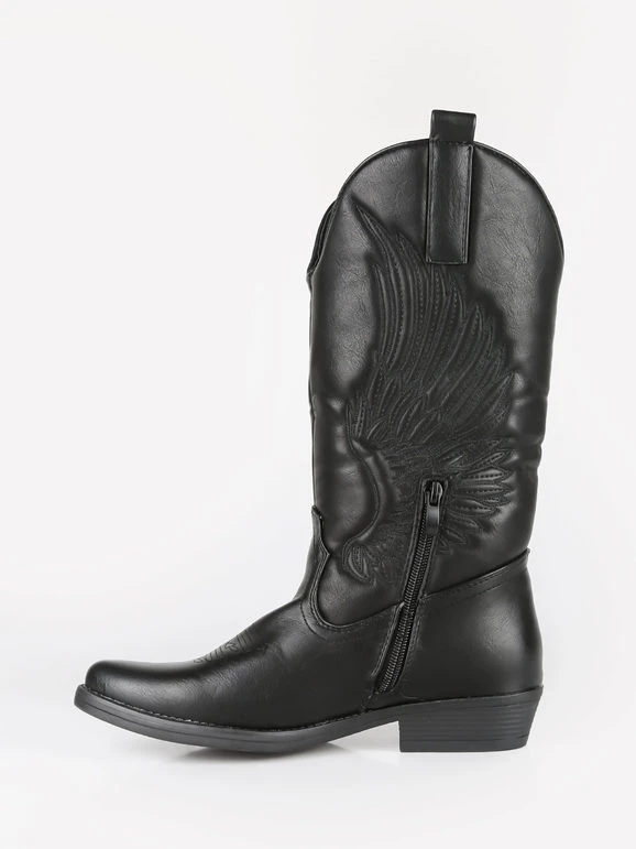 Stivali donna texani con tomaia in ecopelle, mezza zip di chiusura sul lato interno, interno rivestito in tessuto leggermente imbottito, suola in gomma.